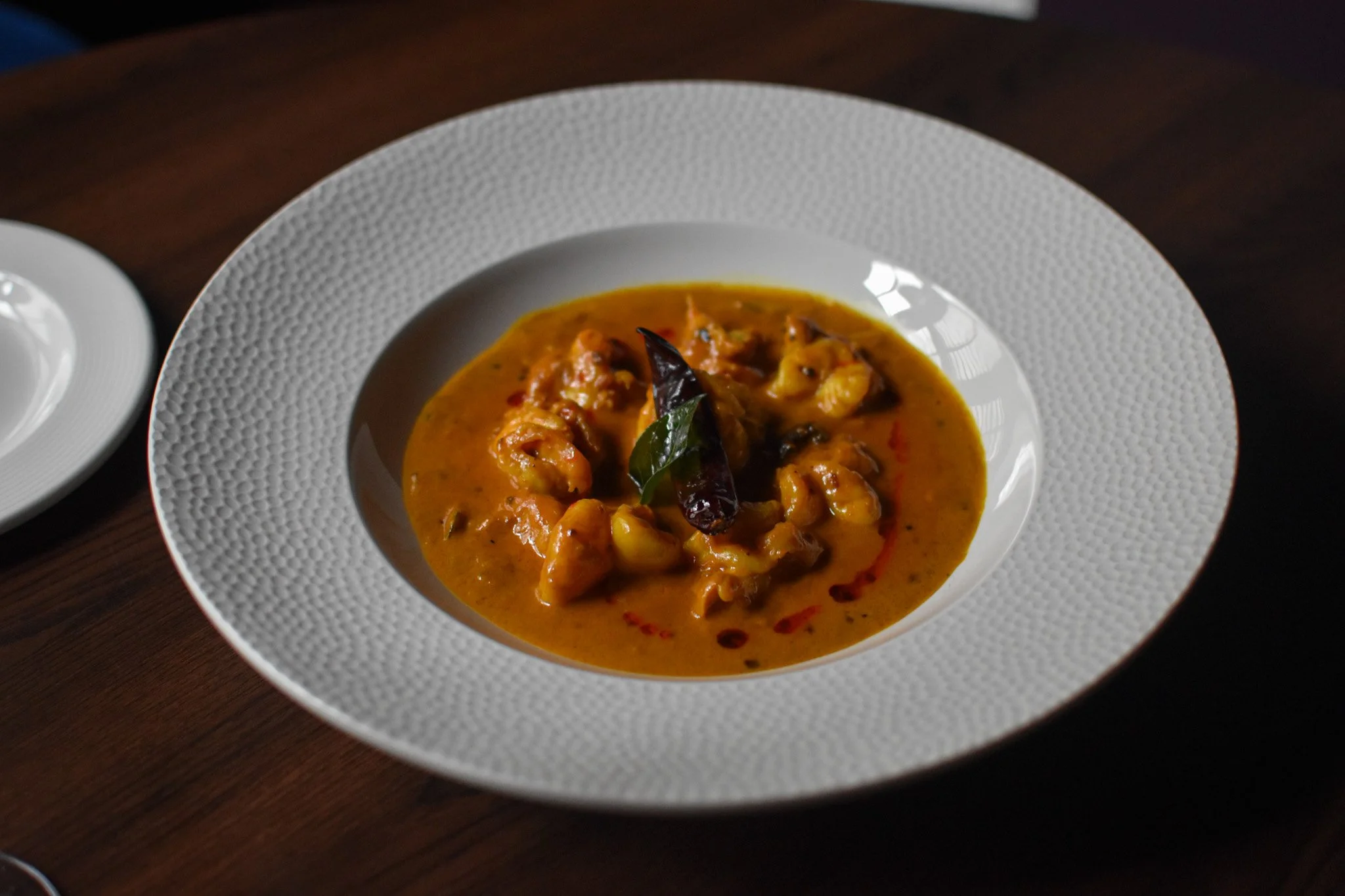 A refined dish from South Indian cuisine, our Prawn Moilee pairs tender prawns with a delicately spiced coconut gravy, layered with mustard seeds, fenugreek, curry leaves, fresh green chillies, and gently softened onions for fragrance, warmth, and depth. Tomato adds subtle balance, while the coconut milk gives the sauce a silky, mellow finish. Lighter and more delicate in character, this dish brings together gentle spice, natural sweetness, and an elegant coastal touch, and is loved by guests across our restaurants in Pwllheli, Porthmadog, and Bangor.