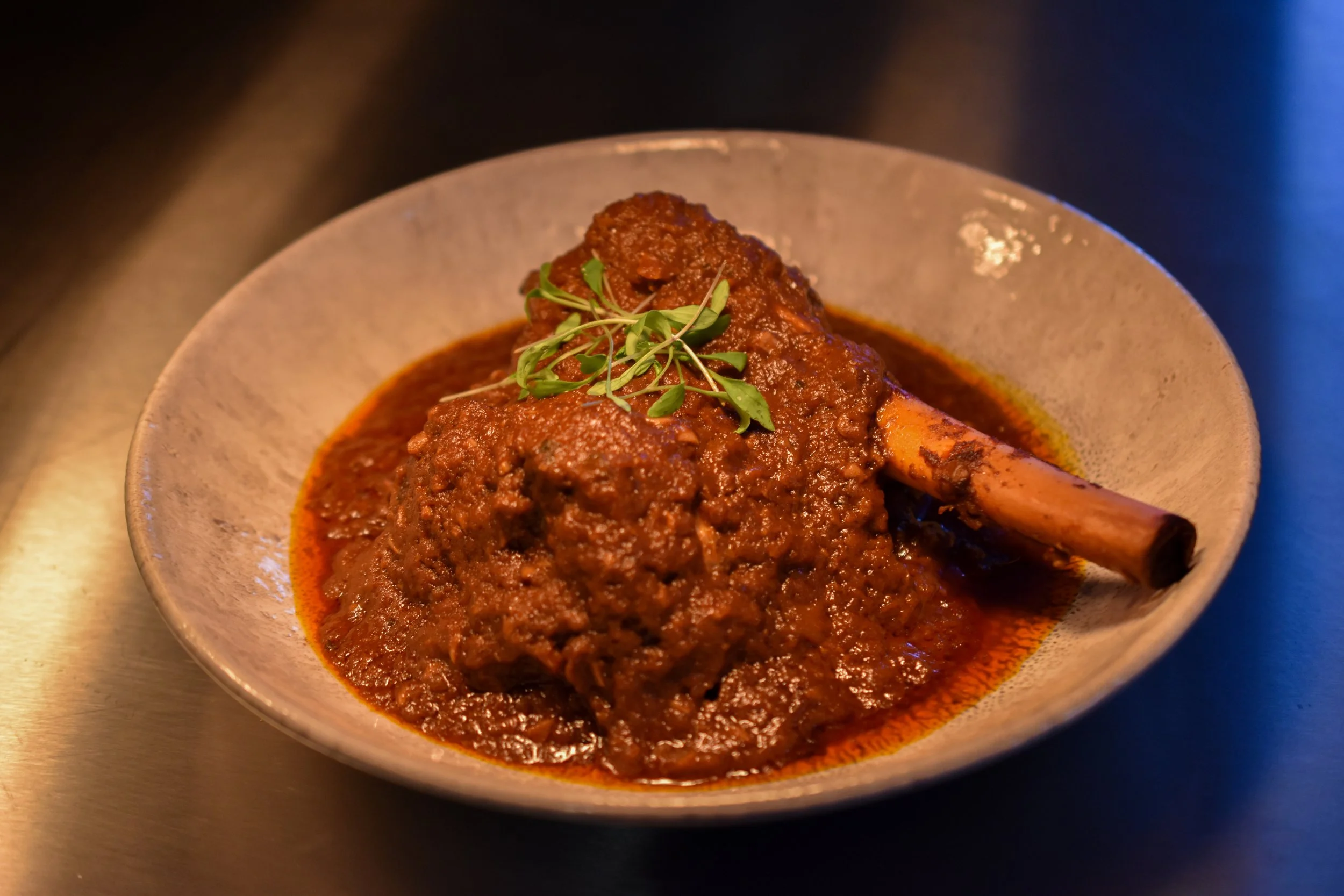 One of the most labour intensive dishes on our menu, our Lamb Shank Rogan Josh is prepared with exceptional care from start to finish. Each lamb shank is trimmed of excess fat, carefully slit, and marinated for at least 24 hours so the flavours can reach deep into the meat. It is then slow cooked for 8 to 12 hours until beautifully tender, rich, and full of depth, and served the following day.