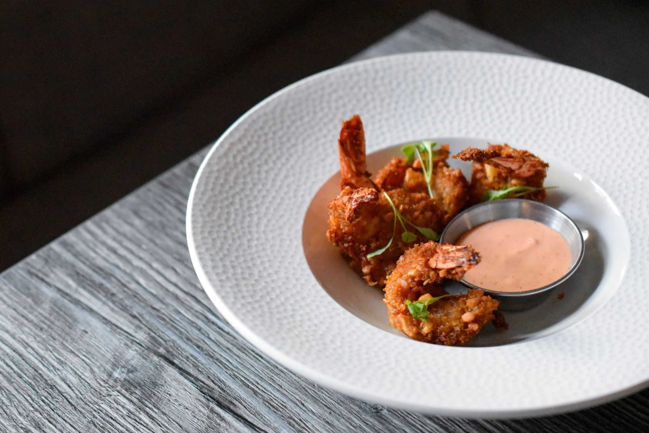 A refined expression of modern Indian seafood, our prawns are carefully peeled and deveined, then gently marinated with ginger, garlic, and our own blend of spices, allowing the flavour to settle into every bite without overpowering their natural sweetness. They are coated in panko breadcrumbs and fried until crisp and golden, creating a delicate crunch while keeping the centre light and succulent. Served with our homemade Explosion Dip, bringing gentle heat and bold character, the dish is vibrant, indulgent, and full of contrast, crisp, juicy, rich, and just fiery enough to leave a lasting impression